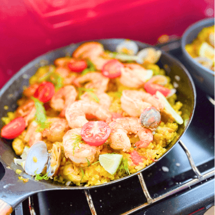 週末は友だちファミリーとキャンプへ行き過ごしています。子どもたちも成長してきたので、私はママたちと一緒に「韓国料理でサムギョプサル」「ベトナム料理でバインミーとフォー」「スペイン料理でタパスとパエリア」などテーマを決め、クッキングして楽しんでいます。